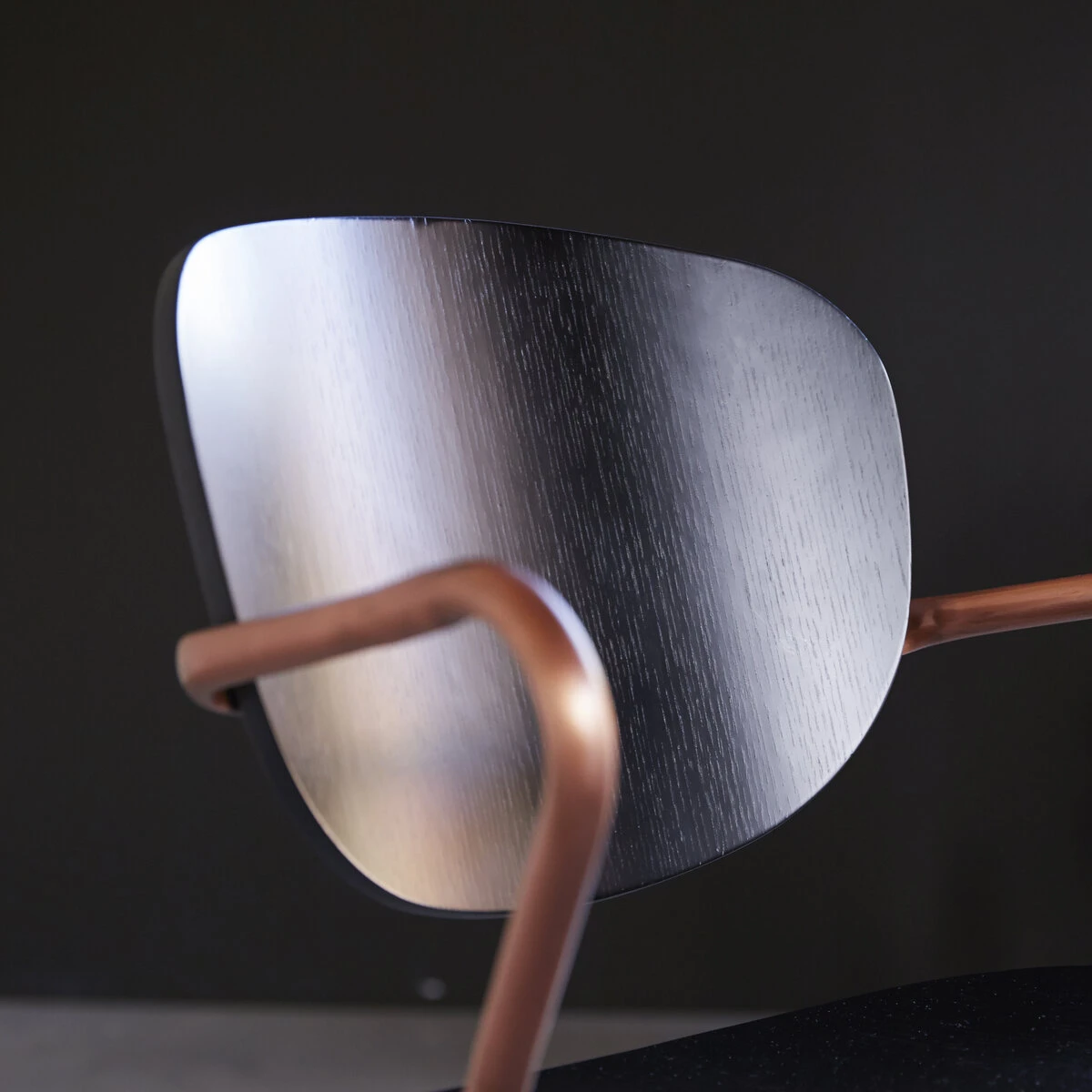 La chaise Ada copper noire offre juste ce qu’il faut de subtilité pour être cuivrée sans être clinquante.