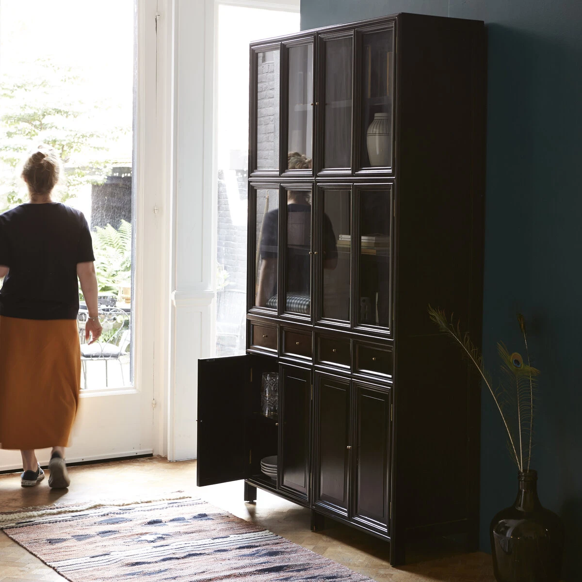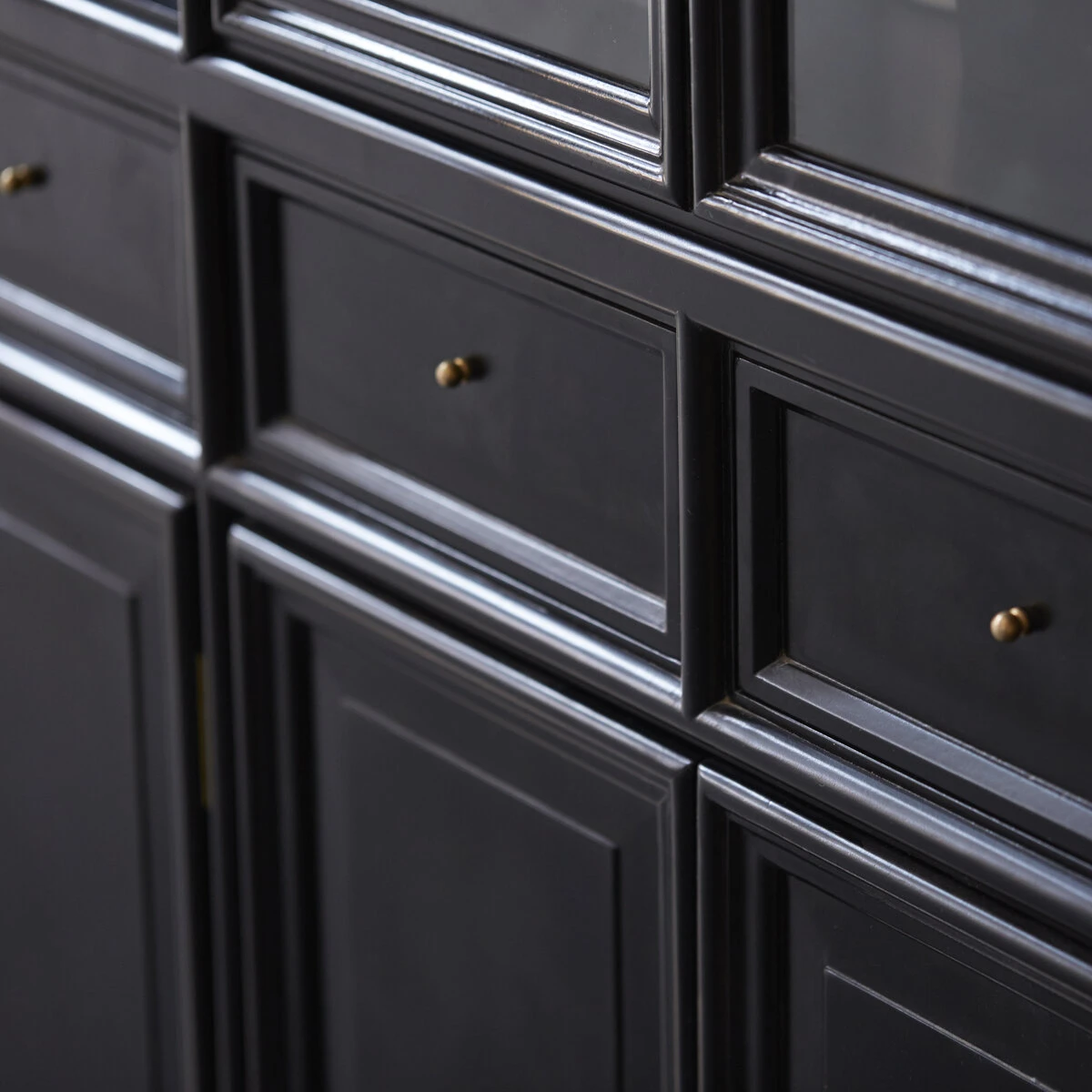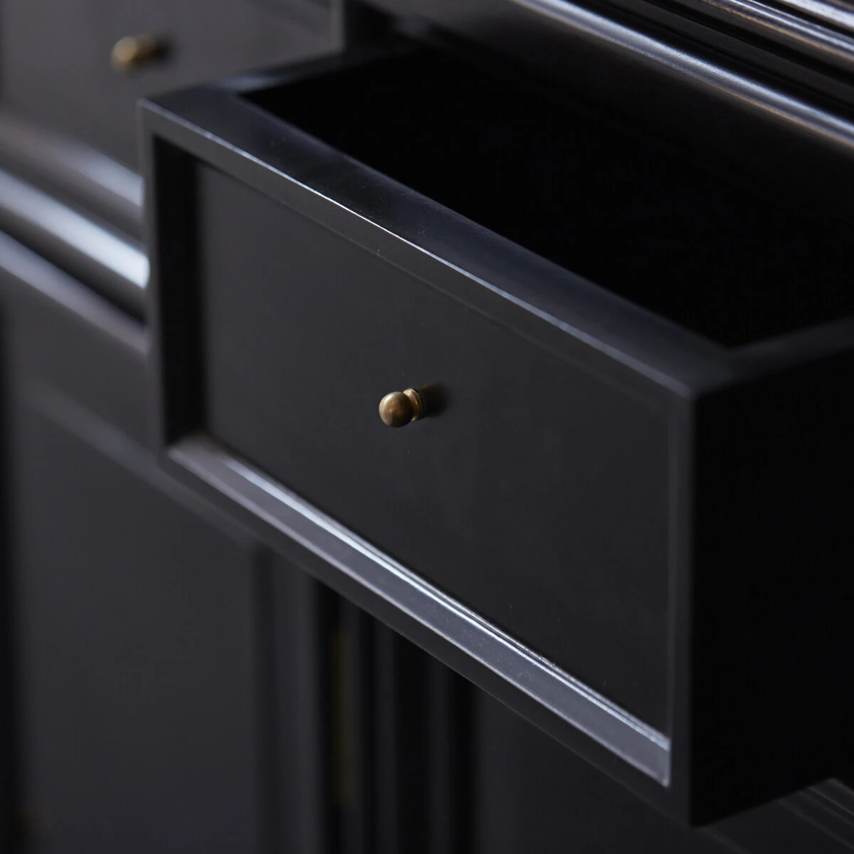 Chic et classique, ce meuble en bois d’acajou peint en noir vous offre un beau volume de rangement.