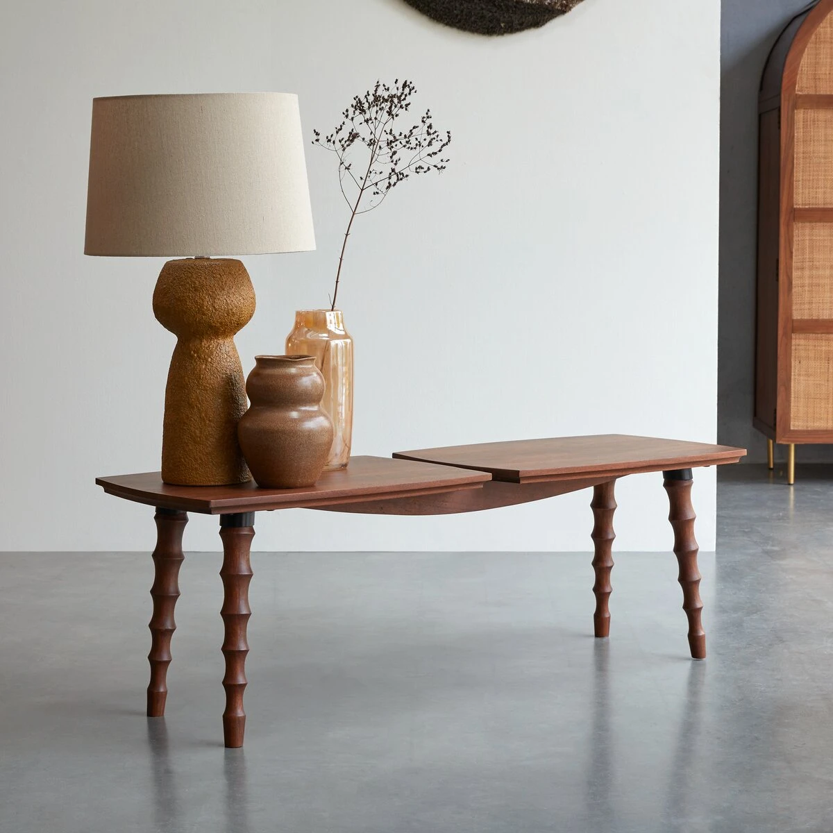 Le banc en manguier massif Anouk peut Ă©galement composer une console basse dans une entrĂ©e, le salon ou la chambre⊠ou jouer les deux rĂŽles : assise dâun cĂŽtĂ©, console de lâautre. Bref, un joli meuble qui permet de laisser sâexprimer sa crĂ©ativitĂ© !