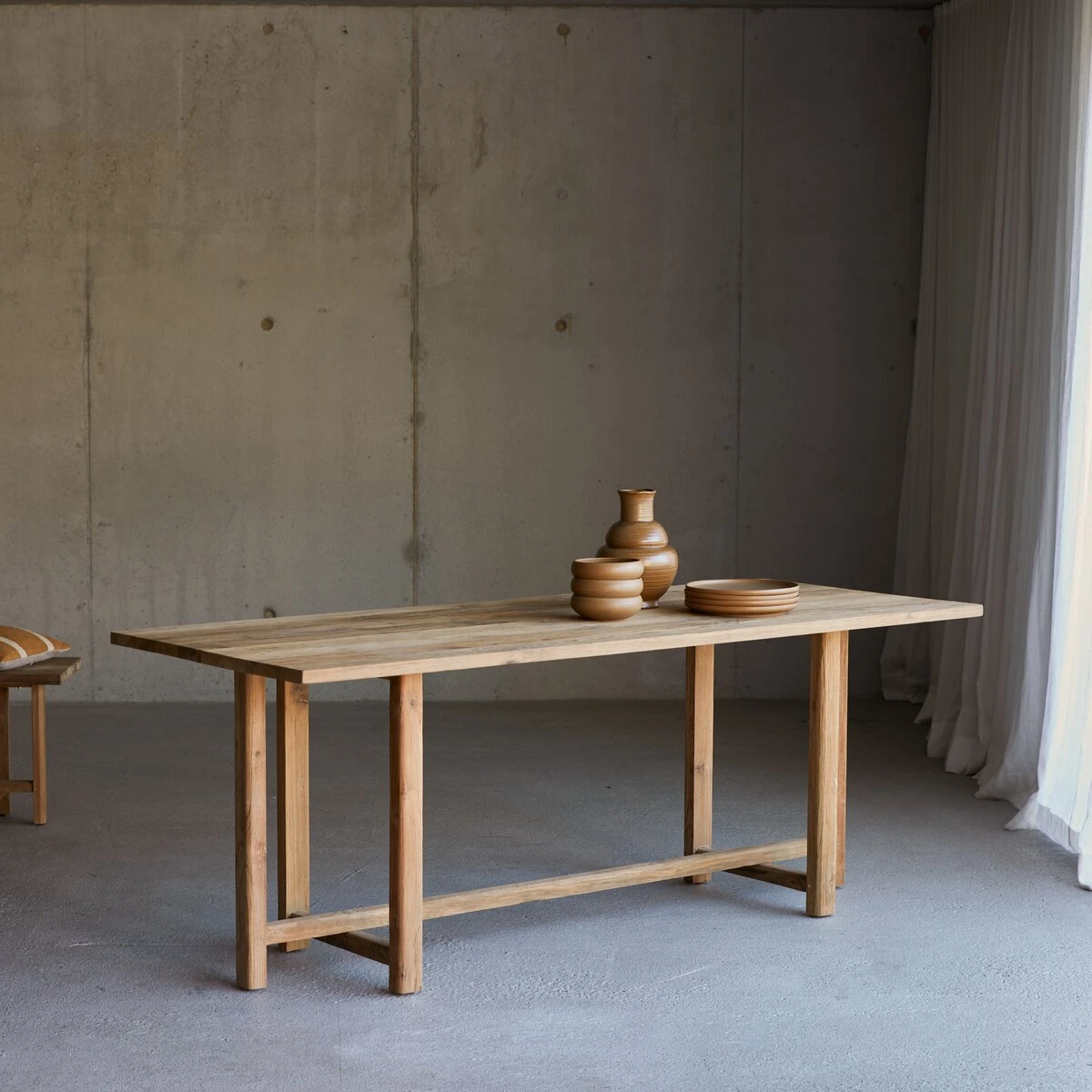 La table en teck massif recyclé Antonia est certifiée FSC® ce qui garantit qu’elle provient de forêts durablement gérées. Elle permet d’accueillir jusqu’à 8 convives. Conçue pour se marier à la perfection avec les bancs en teck massif recyclé Antonia, elle peut aussi être associée à vos chaises ou des chaises de notre gamme de meubles à l’esprit Neo Ethnique. Le minimalisme de ses courbes autorise de nombreuses associations de style.