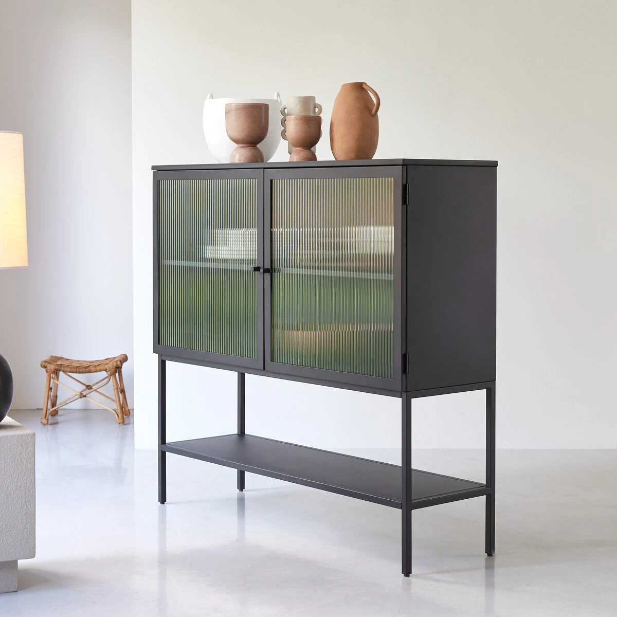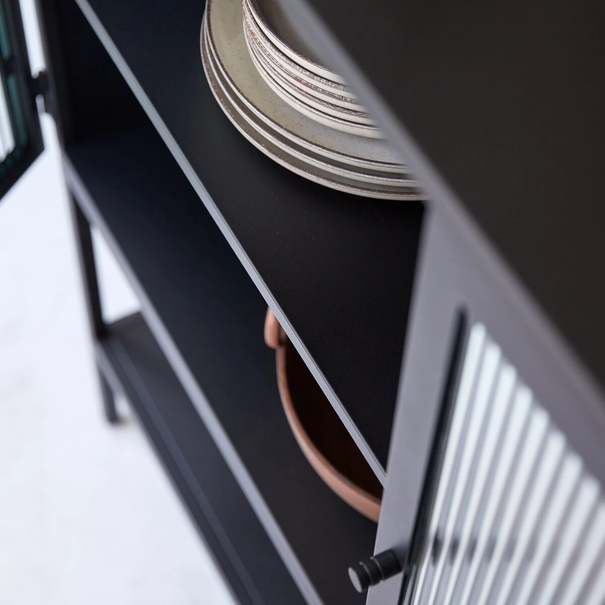 Le bahut en métal Antonin se marie à la perfection avec la colonne et la vitrine de la même gamme.