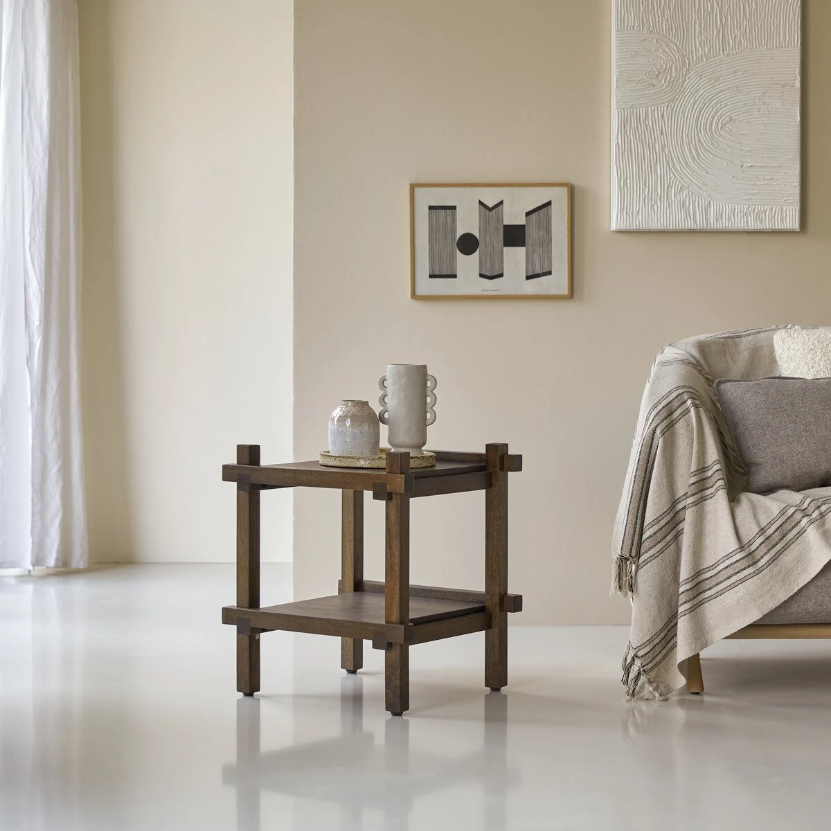Idéal au salon, le bout de canapé Arko en manguier massif joue à la perfection d’autres rôles : chevet dans la chambre à coucher, petit guéridon pour recevoir une plante verte ou un joli bouquet de fleurs, desserte dans le séjour ou la cuisine…