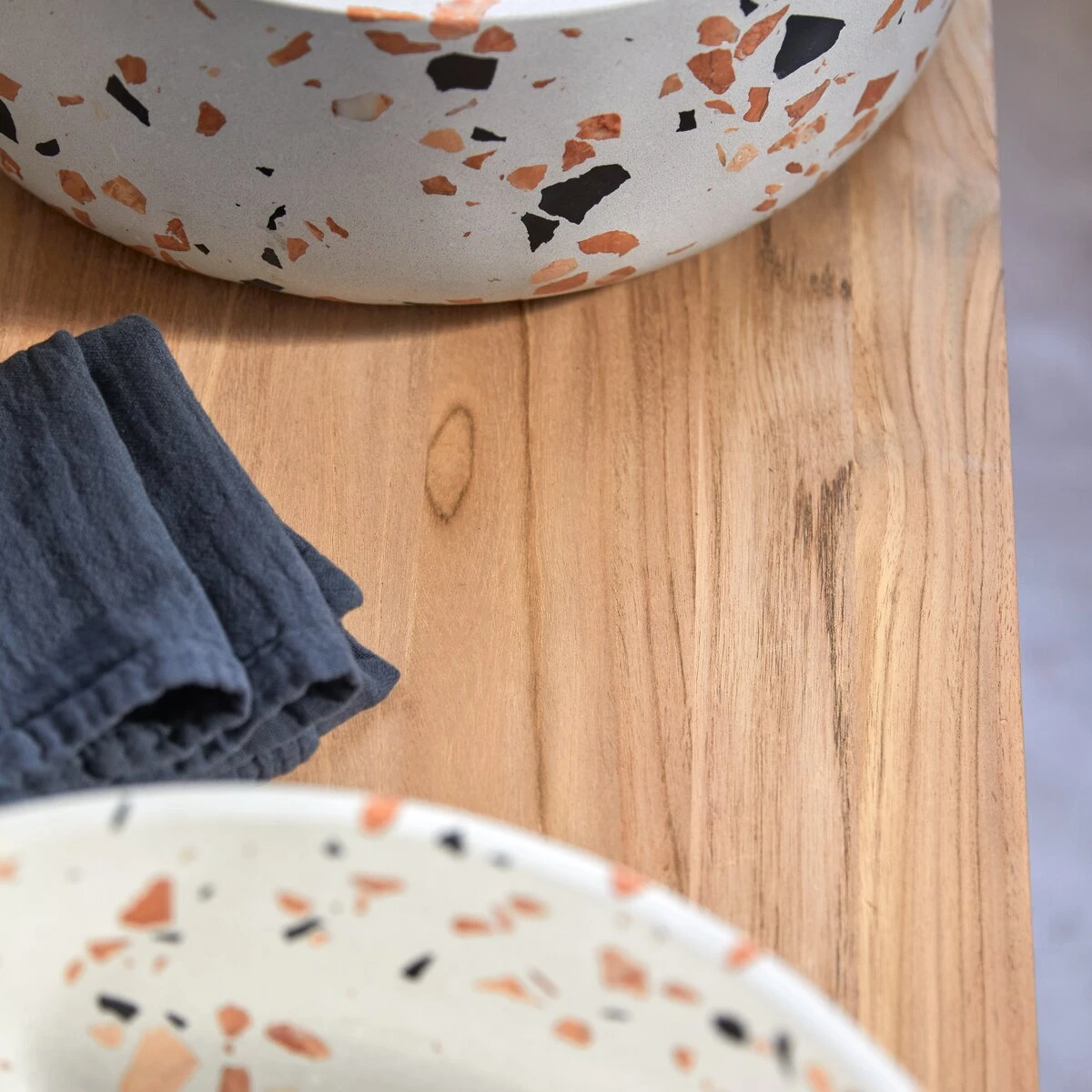 Pour compléter notre meuble de salle de bain en teck, découvrez notre gamme de vasques à poser en marbre Terrazzo, ainsi que les autres éléments de notre collection Arty : des meubles fonctionnels au design naturel.