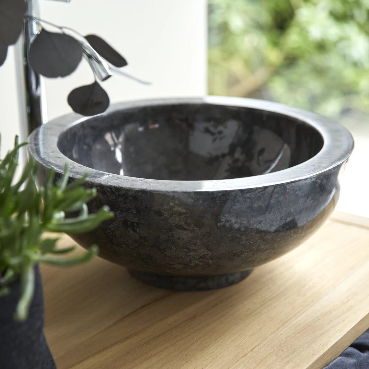 ElĂ©gante petite vasque ronde en marbre. D’un style moderne et sobre, cette vasque Ă poser trouvera aisĂ©ment sa place dans votre salle de bain.
