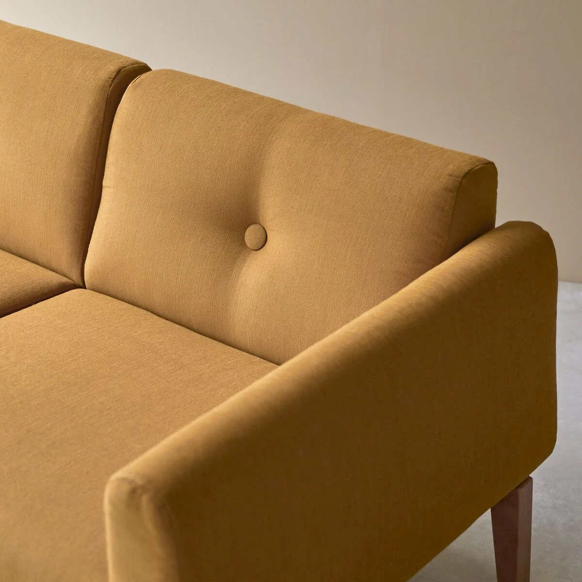 Elément central du salon, le canapé Bjorn moutarde offre de nombreux atouts de séduction : haut de gamme, il est travaillé dans un tissu tissé très fin pour être tout doux, certifié OEKO-TEX® – l’assurance qu’il ne contient aucune substance chimique nocive – et qui a fait l’objet d’un traitement spécifique pour être durable et résistant aux taches.