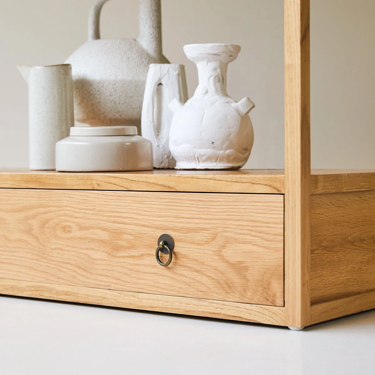 Idéale dans les pièces de vie, la console avec tiroir en chêne massif Clovis trouve aussi sa place dans la chambre ou le bureau… Elle existe dans une version sans tiroir.