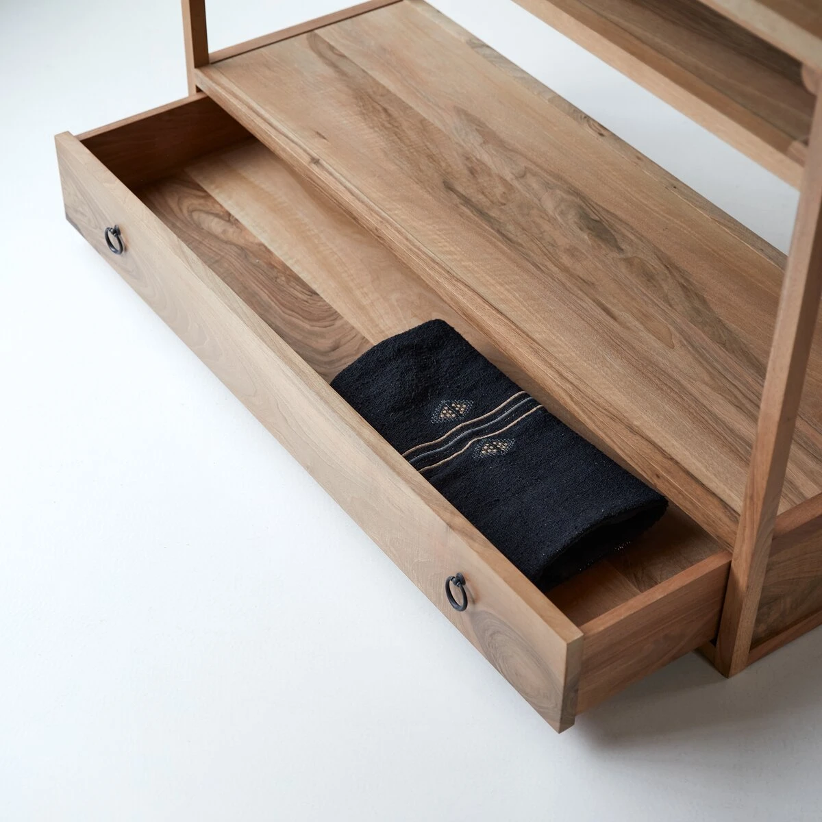 La console en noyer massif Clovis vous est également proposée sans le tiroir à la base. Elle existe dans une autre essence : en chêne massif.