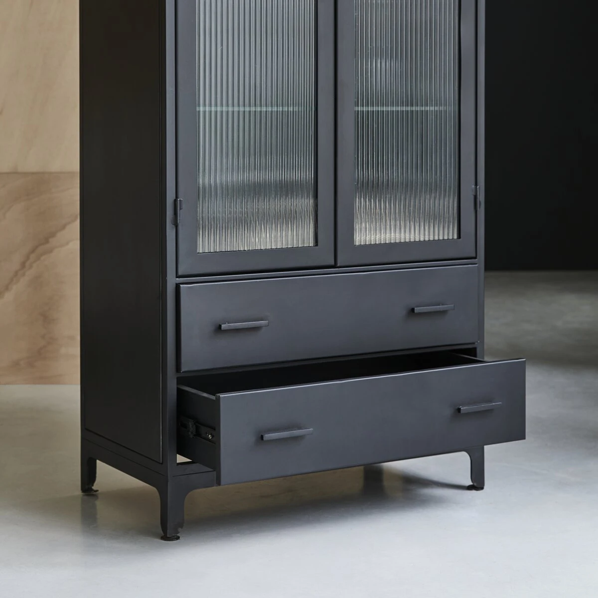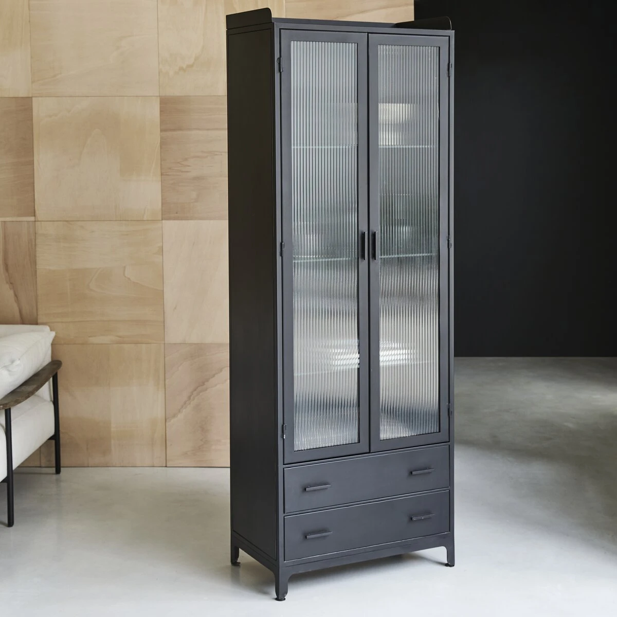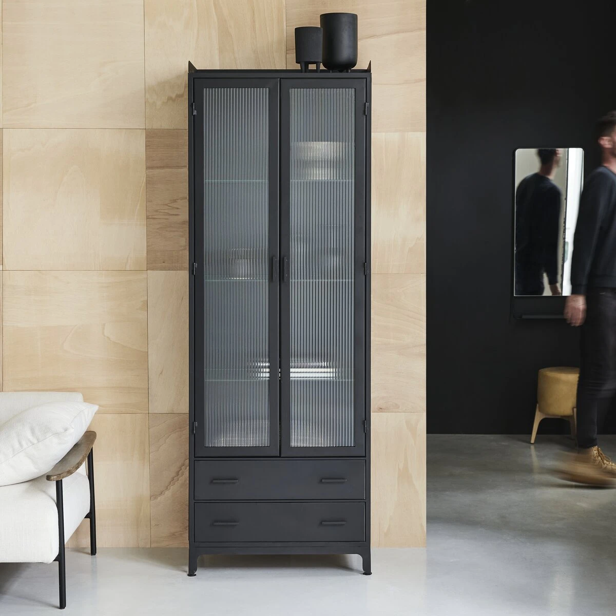 Beaucoup d’allure pour la vitrine haute en métal et verre Emil ! On aime l’inspiration industrielle toujours très en vogue dans les intérieurs contemporains, l’élégante transparence du verre cannelé et la ligne élancée ! Remarquable dans toutes les pièces de la maison : au salon pour recevoir de la déco ou le nécessaire à apéritif, au séjour pour ranger vaisselle et linge de table, dans la cuisine façon garde-manger… même dans la chambre pour accueillir vêtements et linge de nuit !
