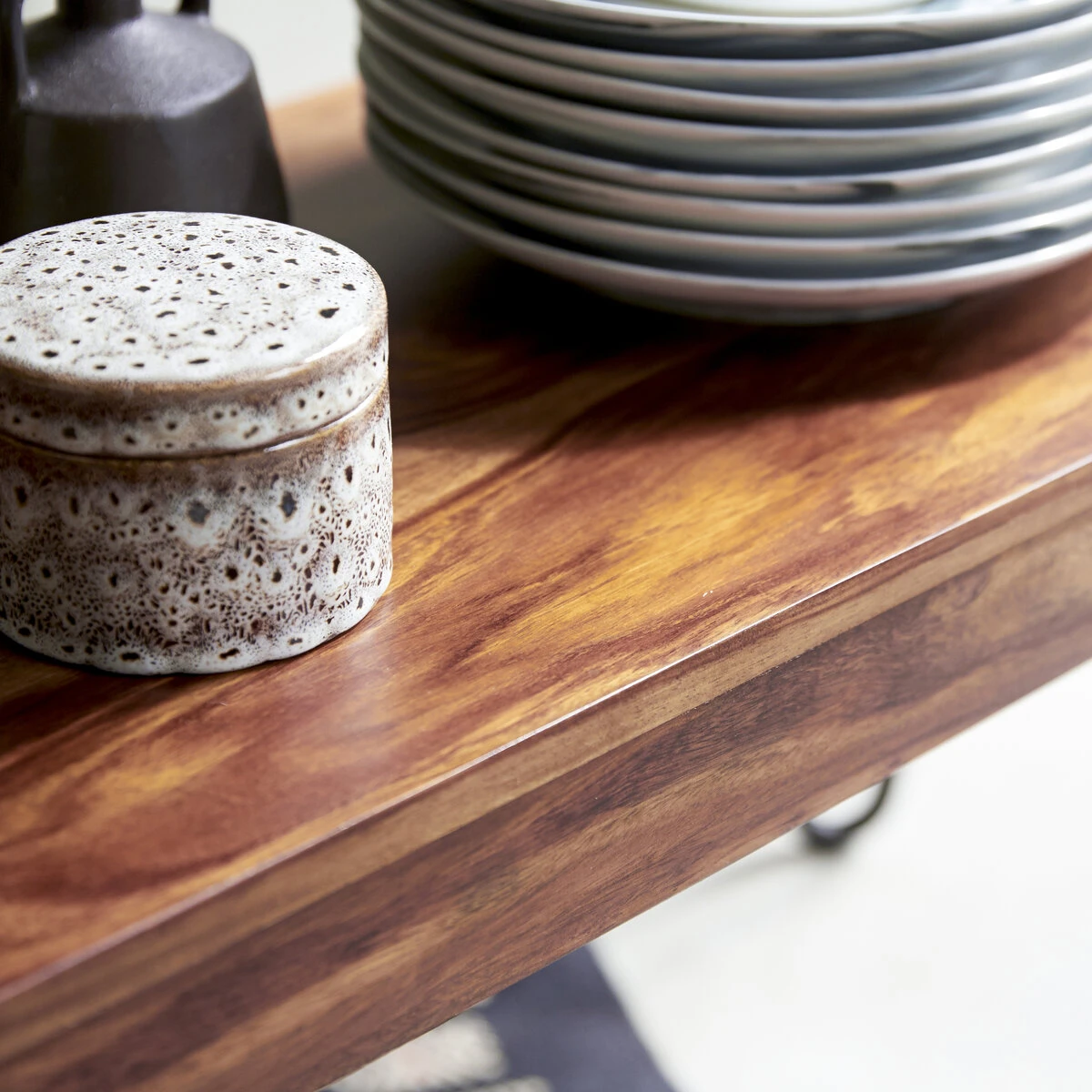 Directement inspiré des meubles professionnels de l’ère industrielle, le banc en palissandre massif 180 Helga trouve sa place partout dans la maison : dans la cuisine ou le séjour, associé à la table en palissandre Helga, dans la véranda façon repose plantes… même dans le couloir ou l’entrée pour se chausser ou déposer son sac.