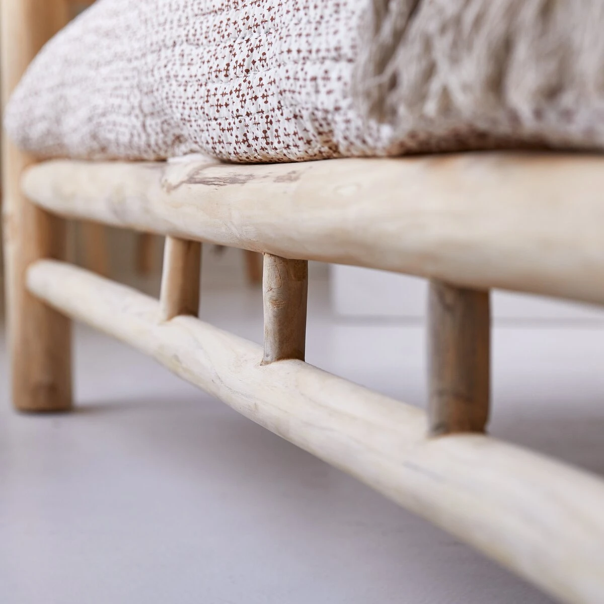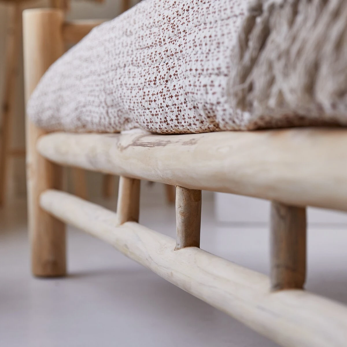 Le lit en teck massif Kalif appartient Ă notre gamme  à lâesprit neo ethnique. Offrez Ă votre enfant un univers exotique complet en lui composant une chambre qui donne envie dâexplorer le monde⊠et complĂ©tez la dĂ©coration de sa chambre en dĂ©couvrant nos autres meubles en bois flottĂ©.