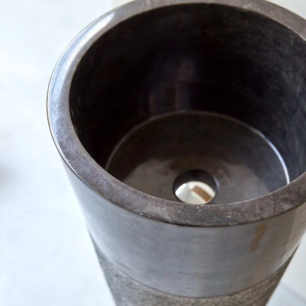 Vasque en marbre en pied très originale. Laissez-vous séduire par une vasque en marbre unique : pièce artisanale dont la partie supérieure est en marbre lisse et le socle en marbre taillé dans la masse. Une vasque en marbre au design moderne qui apportera de l’authenticité à votre salle de bain.