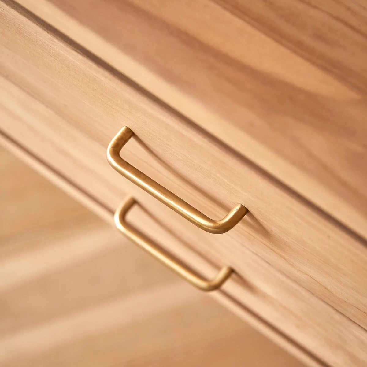 Les parents apprécieront particulièrement son élégante sobriété, son design d’inspiration nordique et les finitions raffinées des pieds rehaussés de laiton. Les tiroirs sont montés sur rails en métal, la garantie de leur résistance à l’ouverture/fermeture répétée.