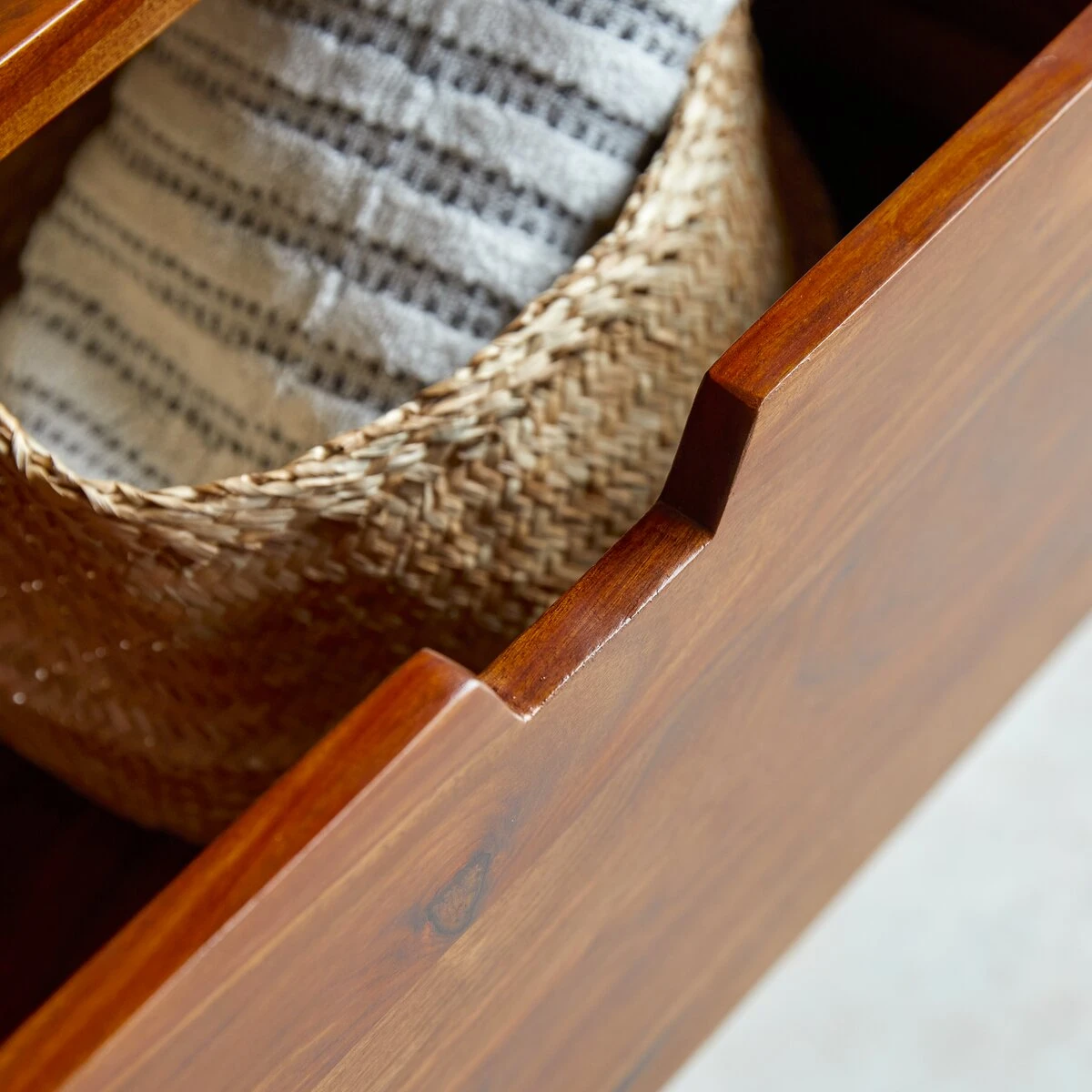 Verni pour résister aux éclaboussures et à l’usure, le meuble sous vasque en palissandre massif Kwarto est conçu pour recevoir une vasque à poser. Au gré de vos envies, vous la choisirez en marbre, en céramique ou en terrazzo.