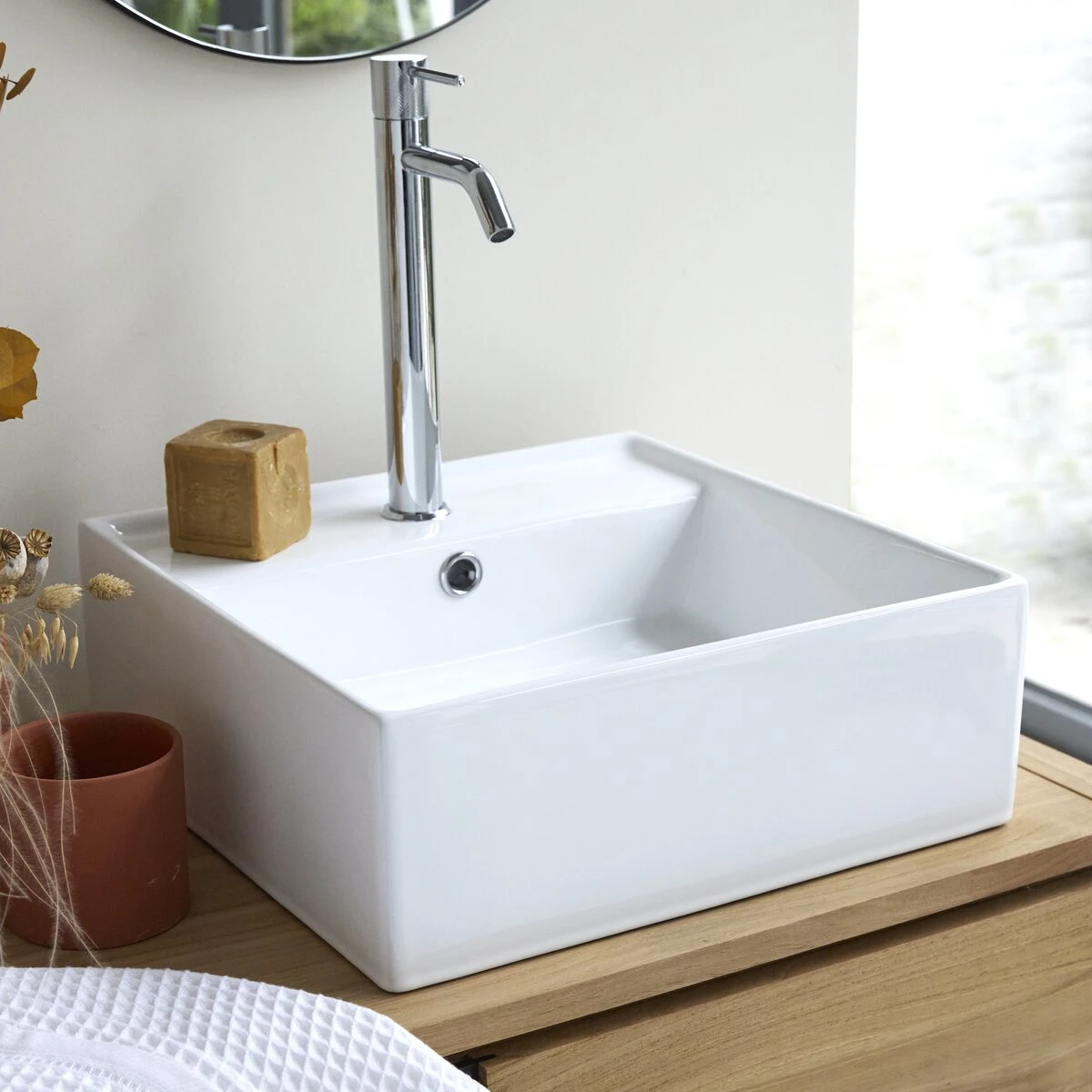 Offrez de l’élégance et de la modernité à votre salle de bain, optez pour une vasque en céramique. Le style raffiné de notre vasque Leonce s’accordera facilement à votre salle de bain en apportant une touche design.