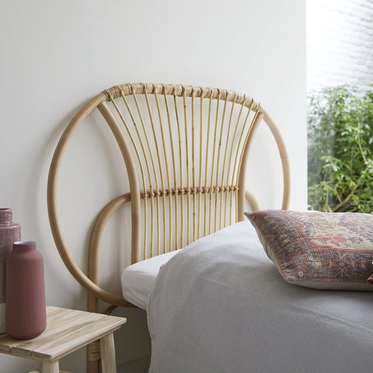 Découvrez notre tête de lit simple Léontie en rotin naturel vernis. Conçue pour un couchage d’1 personne, elle sera idéale pour un lit de 90 cm.