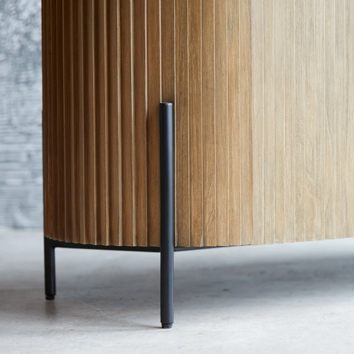 Un petit air art déco pour habiller salon, séjour, cuisine… ou même la chambre ! Le buffet en mindi verni Lou joue avec talent le mélange des genres : sa ligne arrondie nous renvoie aux années folles, son piètement fin en métal lui confère une belle modernité.