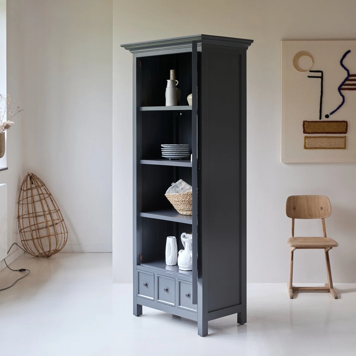 Notre armoire vitrine en acajou Masha est idéale comme meuble de rangement, en effet grâce à ces 3 étagères et ces 3 petits tiroirs, il vous offrira une capacité de rangement importante. Sa praticité en fait un meuble utile dans toutes les pièces de la maison.
