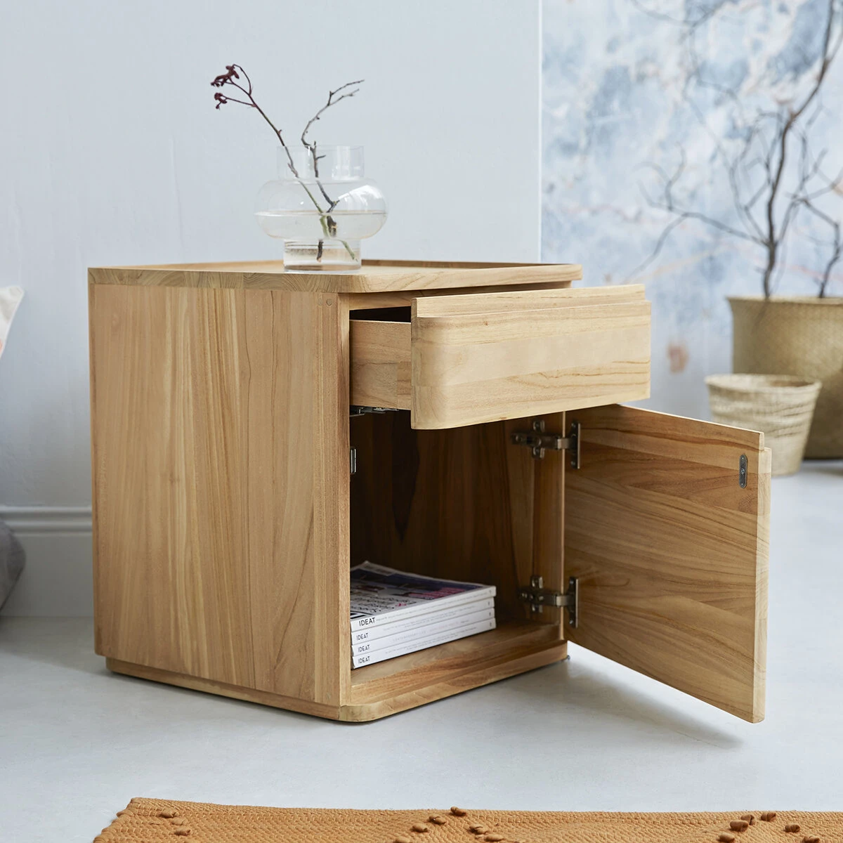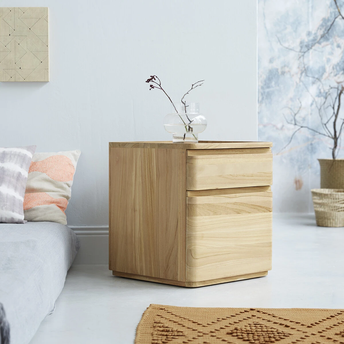 Le chevet en teck Nino compose une superbe chambre à coucher associé à l’armoire en teck Greta et à la commode en teck Lubin. Vous pouvez aussi choisir de le combiner à vos meubles déjà existants. La douceur de son coloris autorise toutes les associations.