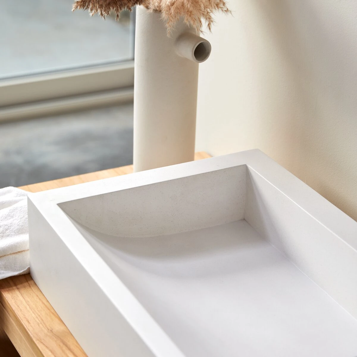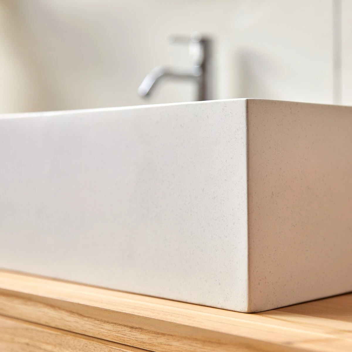 La vasque en terrazzo Pegase conjugue sobriété et élégance contemporaine. On aime l’esthétique de sa matière légèrement mouchetée (qu’on appelle aussi Granito) et son design épuré. Idéale associée à nos meubles de salle de bain, cette vasque se pose avec la même réussite sur l’un de vos meubles existants : la pureté de sa ligne et son coloris clair autorisent de nombreuses associations de style.
