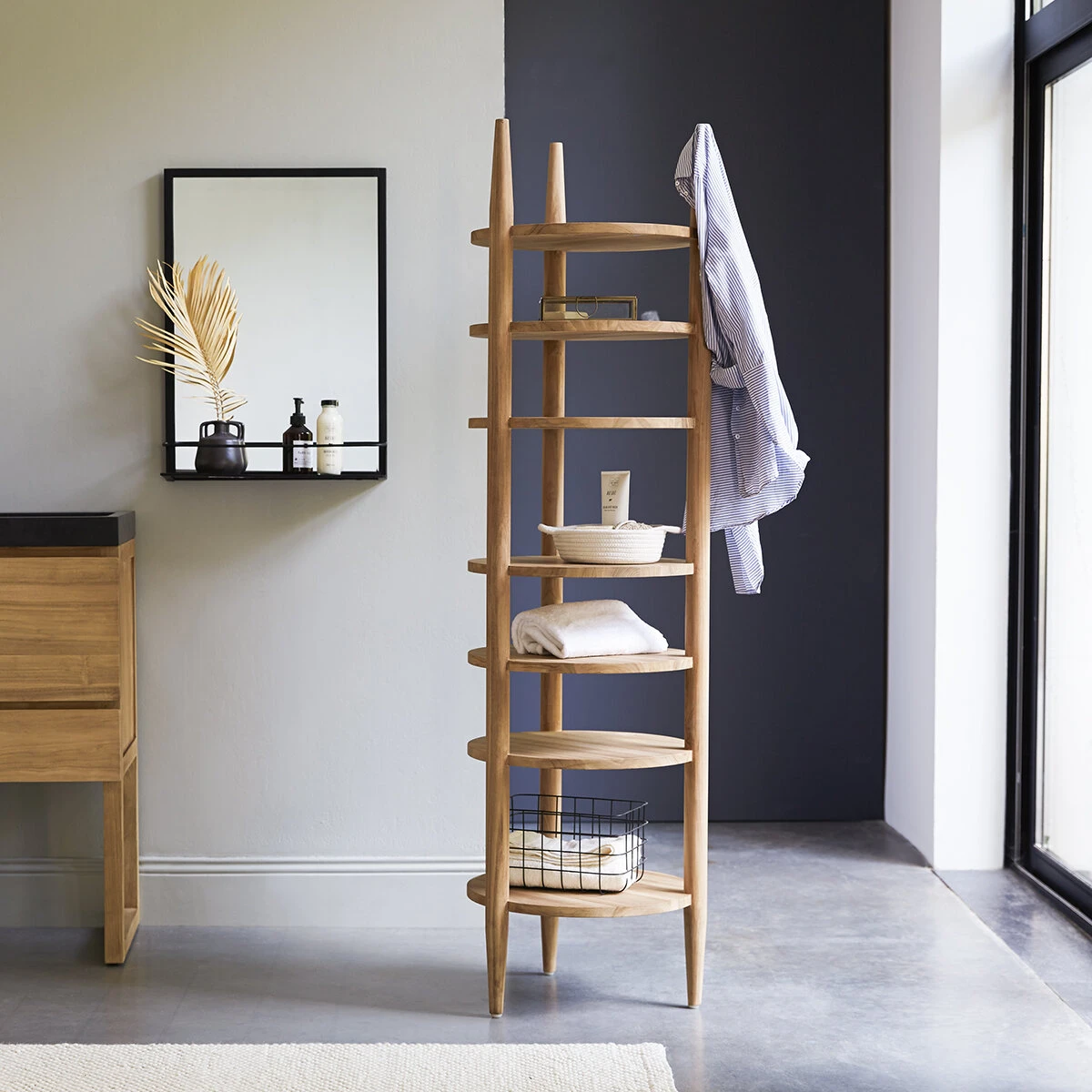 L’étagère en teck Poline confère à votre salle de bain charme intemporel et originalité d’une ligne très graphique. Idéale dans la pièce d’eau, on la réinterprète très facilement au salon ou dans la chambre.