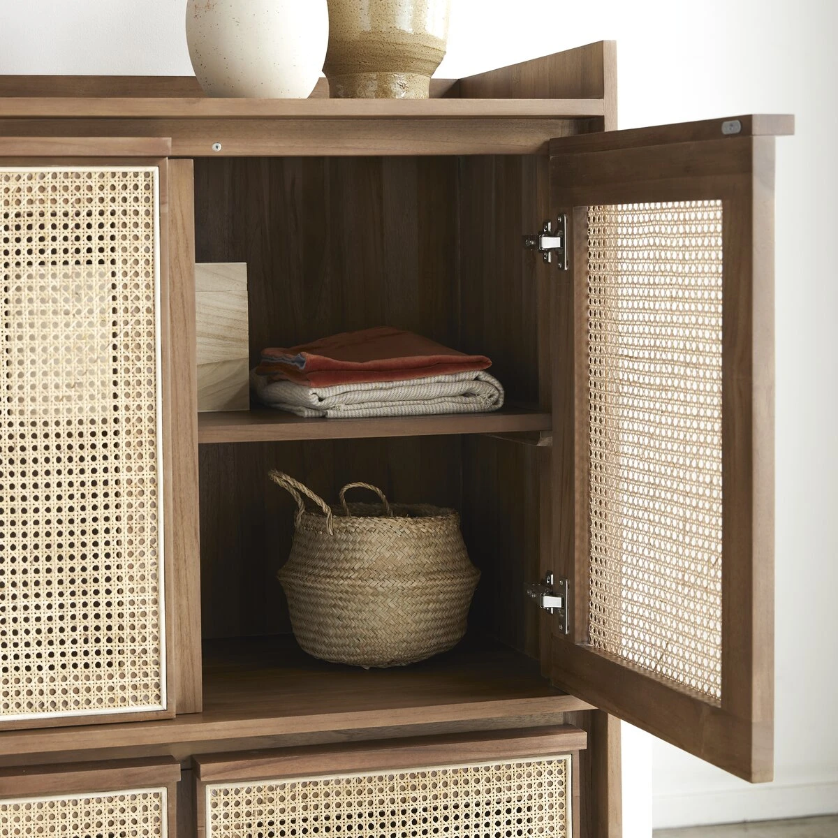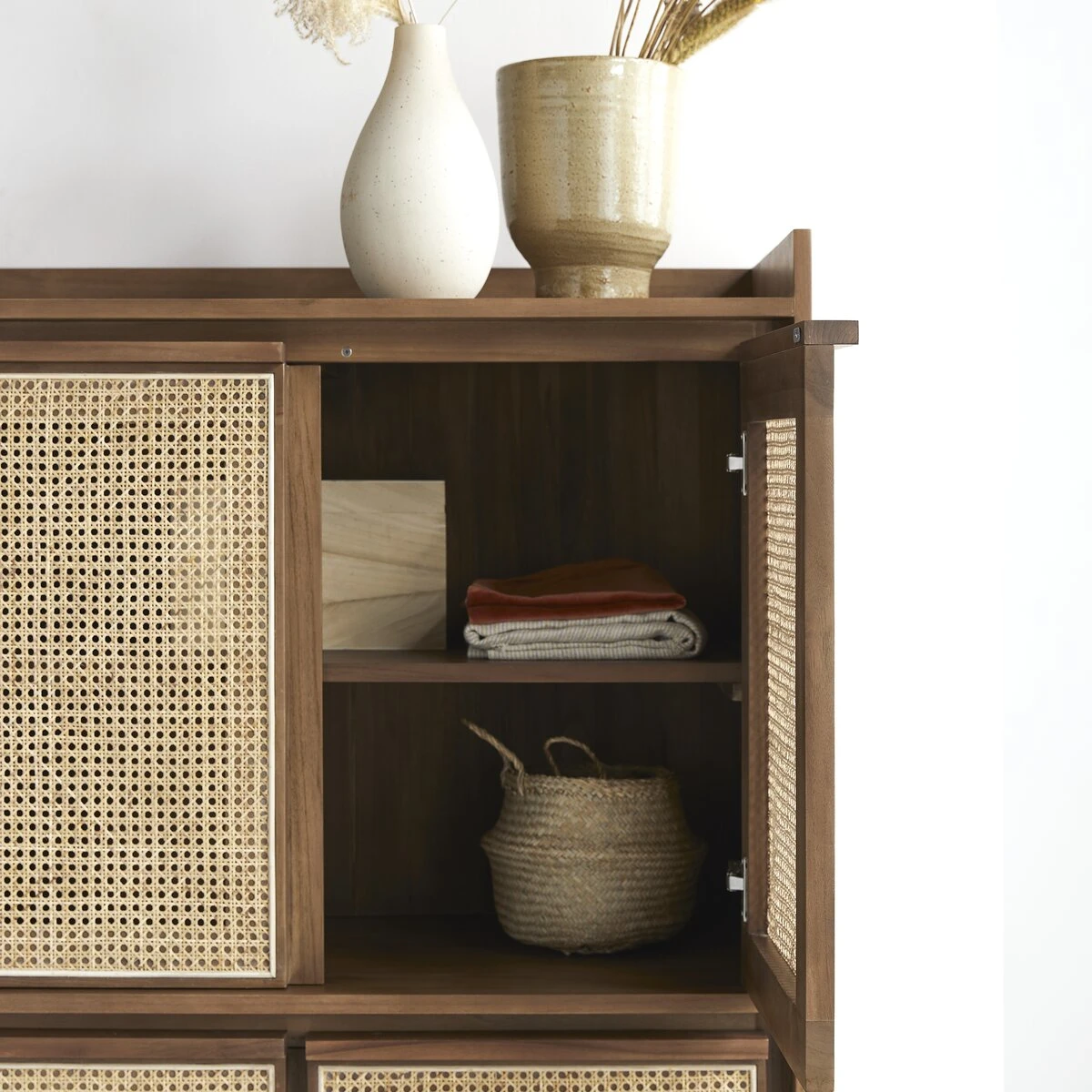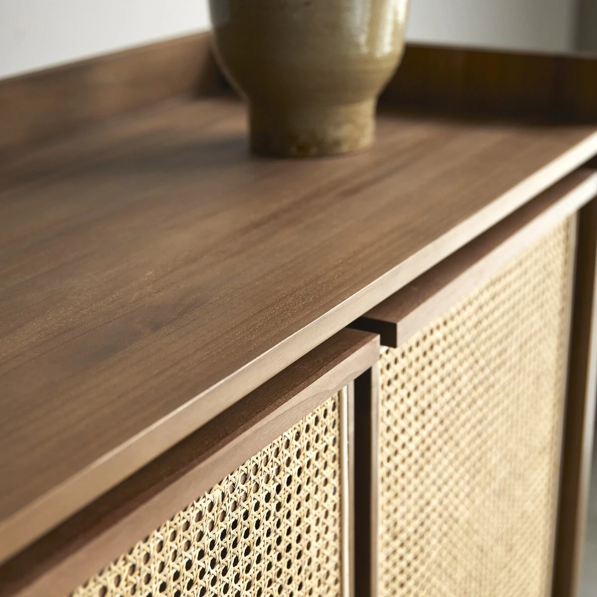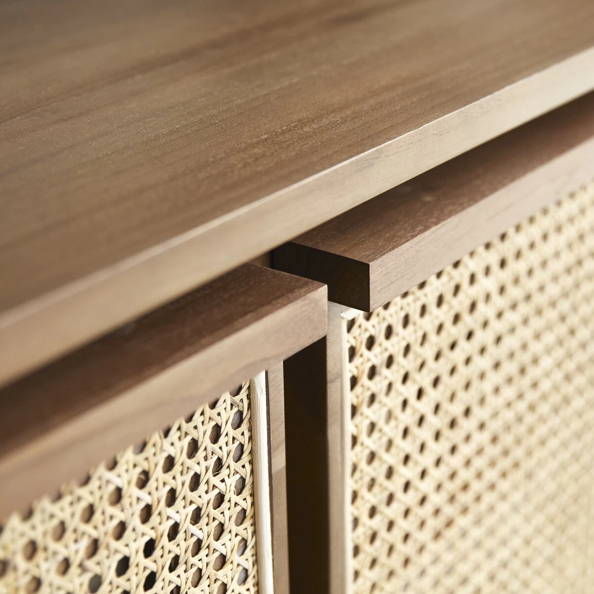 Travaillée dans des matériaux de très belle qualité, l’armoire en teck massif Roots : un meuble plein de talent pour une chambre à coucher de caractère ! Le cannage est désormais très présent dans nos intérieurs… il est proposé ici dans une version contemporaine où sa blondeur raffinée est associée à l’intensité d’un bois foncé.