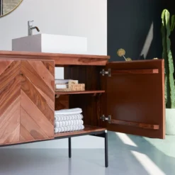 Edgar – Meuble Salle De Bain En Teck Massif Et Terrazzo Premium Pink 80 Cm
