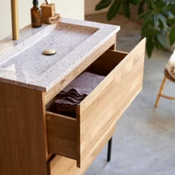 Nova – Meuble Salle De Bain En Chêne Massif Et Terrazzo Premium Pink 80 Cm
