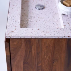 Nova – Meuble Salle De Bain En Palissandre Massif Et Terrazzo Premium Pink 80