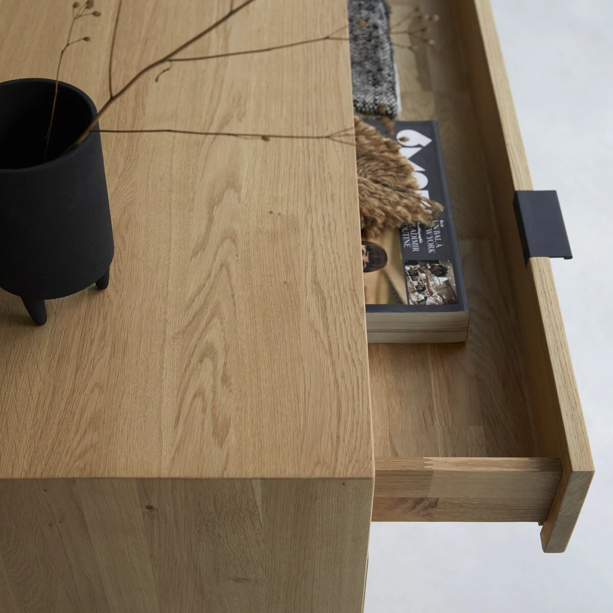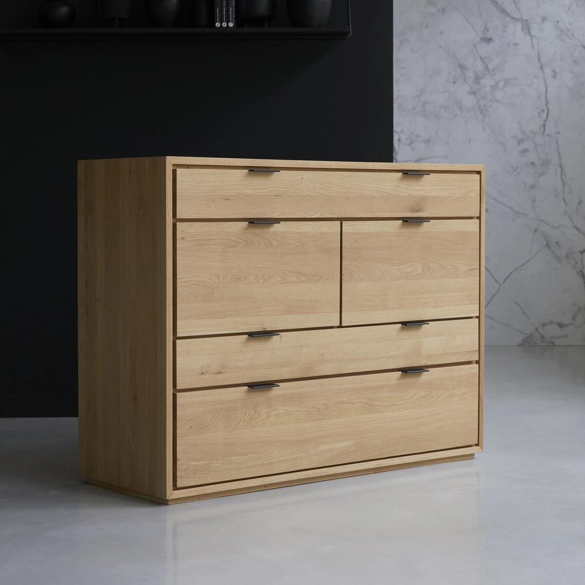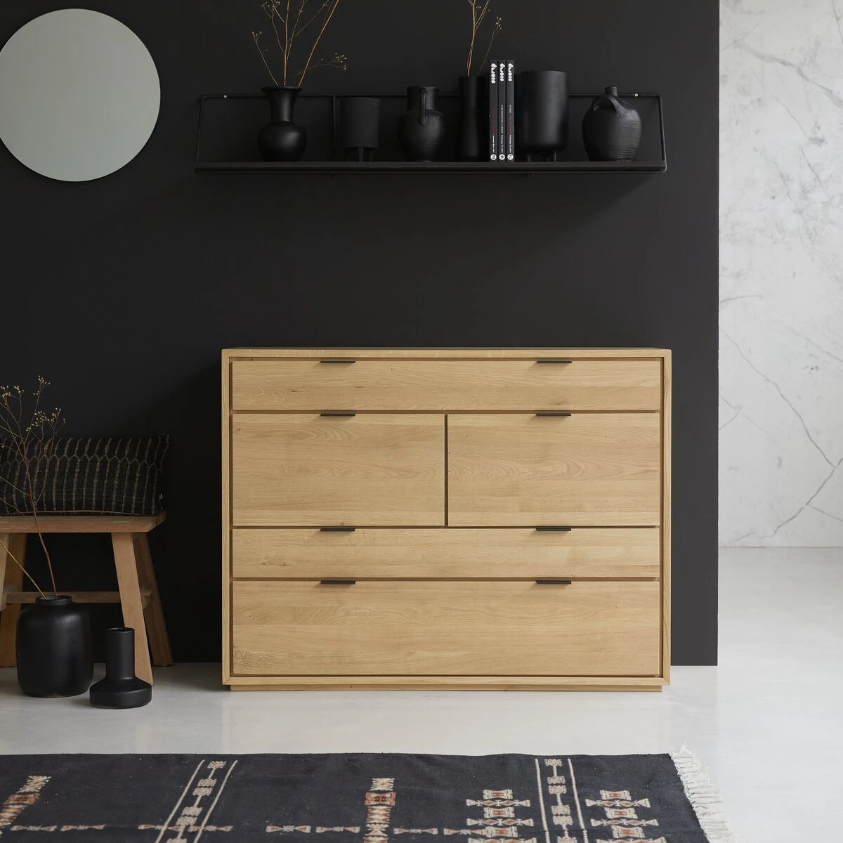 La commode en chêne Senson Oak… un meuble bien pratique, qui trouve sa place partout dans la maison ! On aime son design bloc allégé visuellement par un cadre tout en finesse, son chêne massif certifié FSC® et le traitement à l’huile qui le protège tout en laissant s’exprimer la beauté de ses fibres. Plutôt conçue pour accueillir des vêtements dans la chambre, elle est aussi parfaite pour compléter l’agencement de votre séjour ou de votre salon.