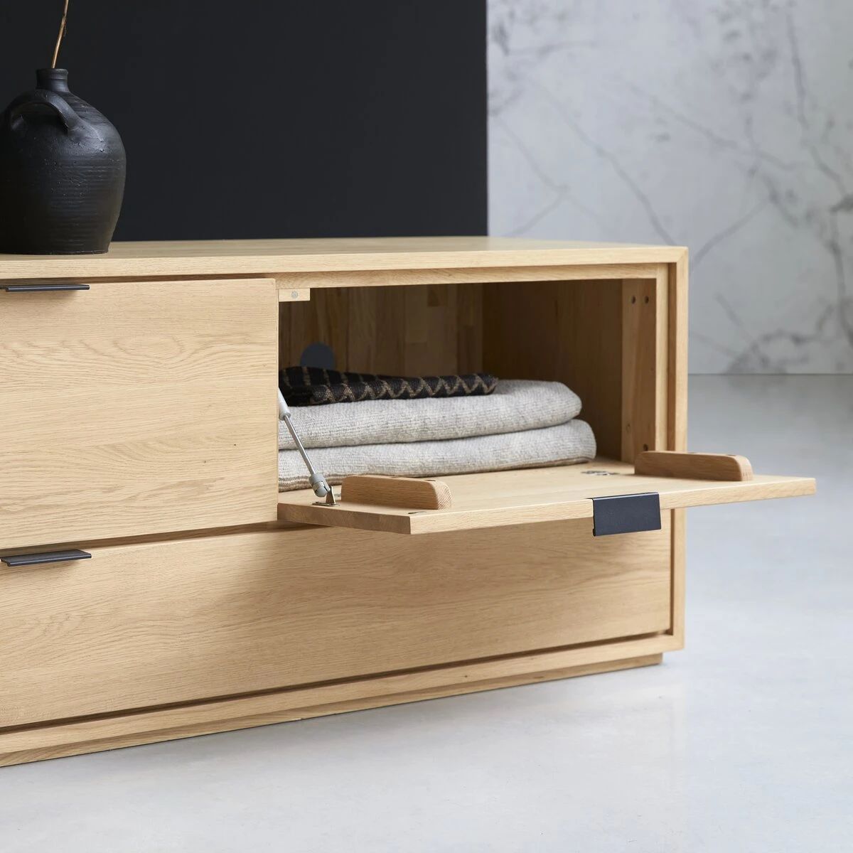 Le meuble TV en chêne Senson Oak permet de ranger avec élégance et modernité tous les éléments multimédia !