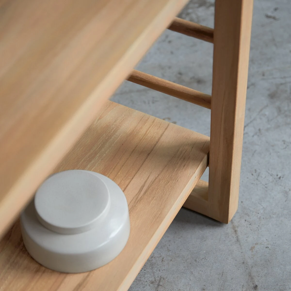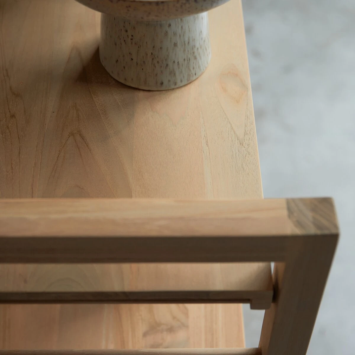 La bibliothèque en teck massif Sera (80 x 115 cm) requiert un minimum d’encombrement pour un maximum de rangement. 4 étagères reçoivent livres, déco, plantes et autres objets du quotidien. Parfaite au salon, elle trouve aussi tout naturellement sa place, version étagère, dans la chambre, le bureau ou la salle de bain.