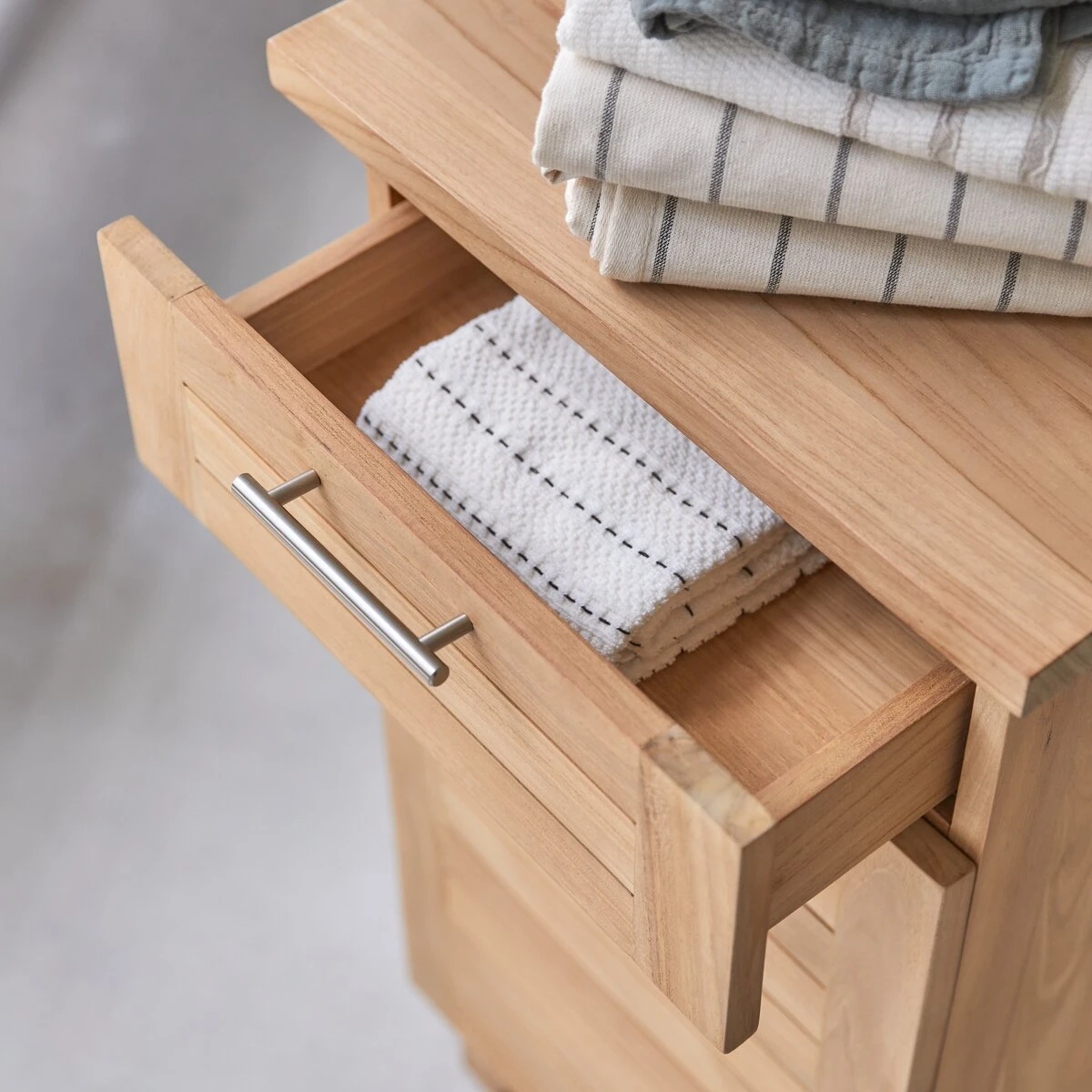 Place au naturel et à l’harmonie dans la salle de bain … Tikamoon vous présente la collection salle de bain en teck brut Soho, des lignes simples et légères pour un style chaleureux et cocon.