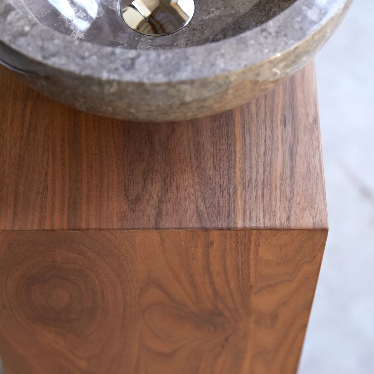 Le meuble sous-vasque en noyer massif Stelle complÚte avec beaucoup de réussite les autres piÚces de notre collection de bain Stelle. Il vous est également proposé en teck massif.