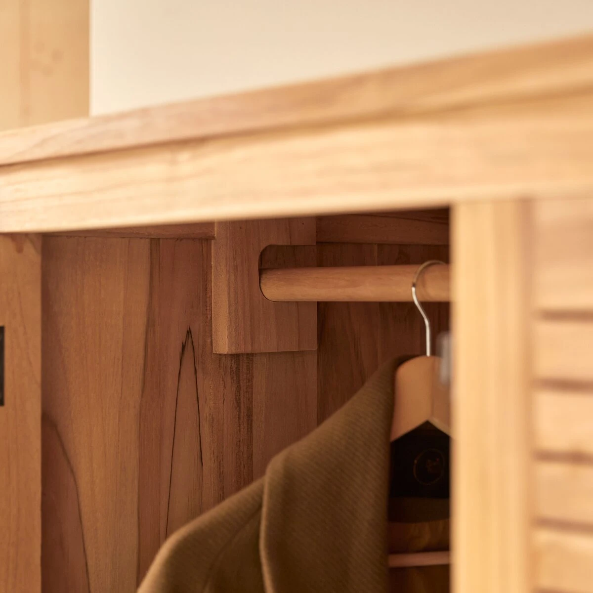 Raffinement et Ă©lĂ©gance : notre armoire en teck certifiĂ© FSCÂź Suzette saura vous ravir, elle trouvera aisĂ©ment sa place dans votre chambre ou votre salon. Amateur de bois massif naturel, vous serez conquis par l’authenticitĂ© de son bois brut.