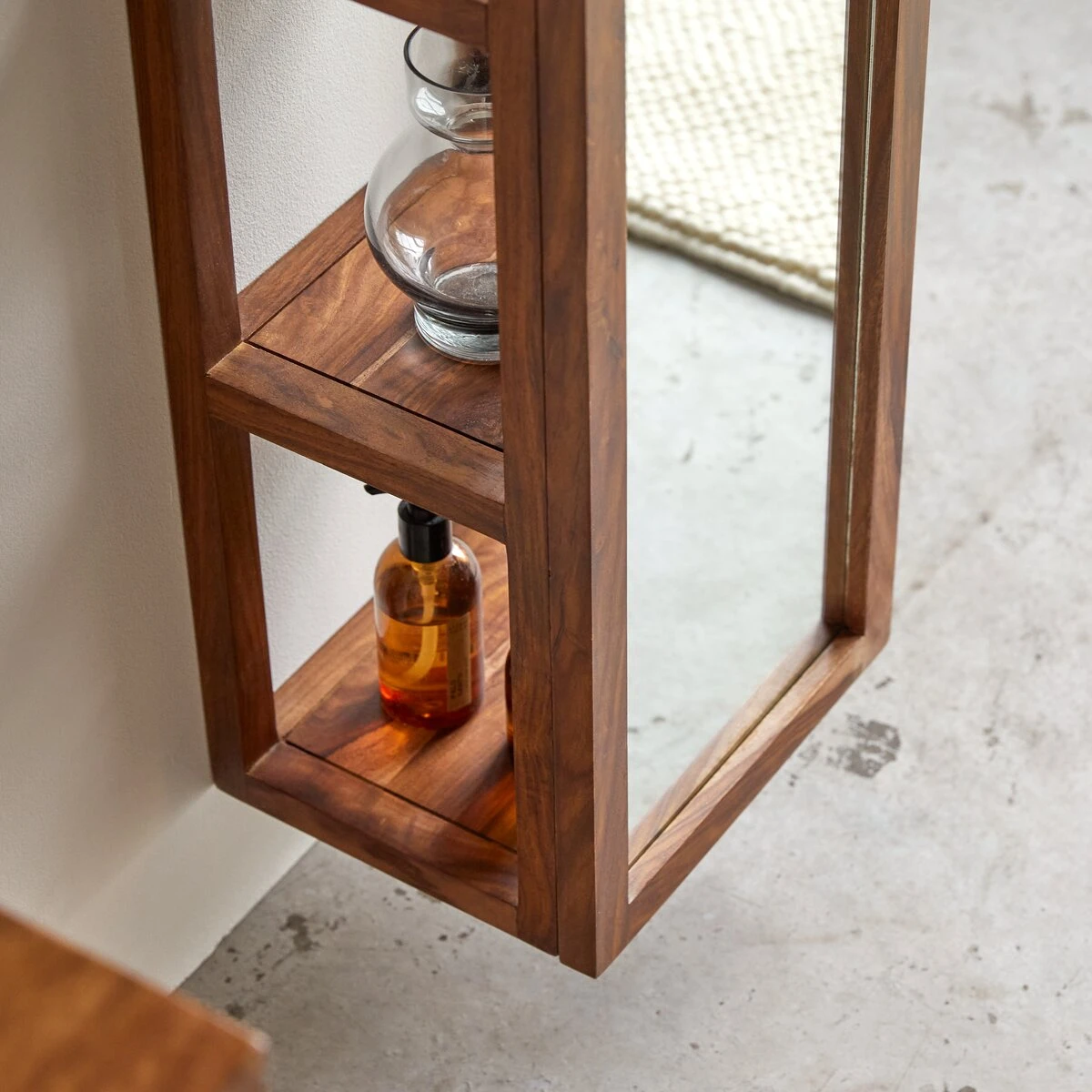 La colonne en palissandre massif Twig, une 2 en 1 qui conjugue design contemporain et charme intemporel : en un seul espace, vous disposez dâun grand miroir et de 6 niches de rangement. On aime le bois dense et aux veines apparentes du plus bel effet et la finition vernie qui protĂšge des Ă©claboussures. IdĂ©ale dans la salle de bain pour complĂ©ter notre collection en palissandre massif Kwarto, cette colonne trouve aussi naturellement sa place dans dâautres piĂšces de la maison, comme une chambre, le dressing ou le sĂ©jour.