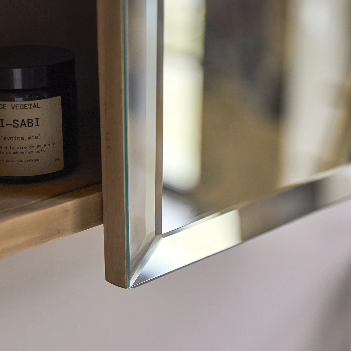 Pratique, le double-emploi de ce meuble de salle de bain, à la fois étagère de rangement et miroir coulissant, vous permet d’optimiser l’organisation de votre espace bain.