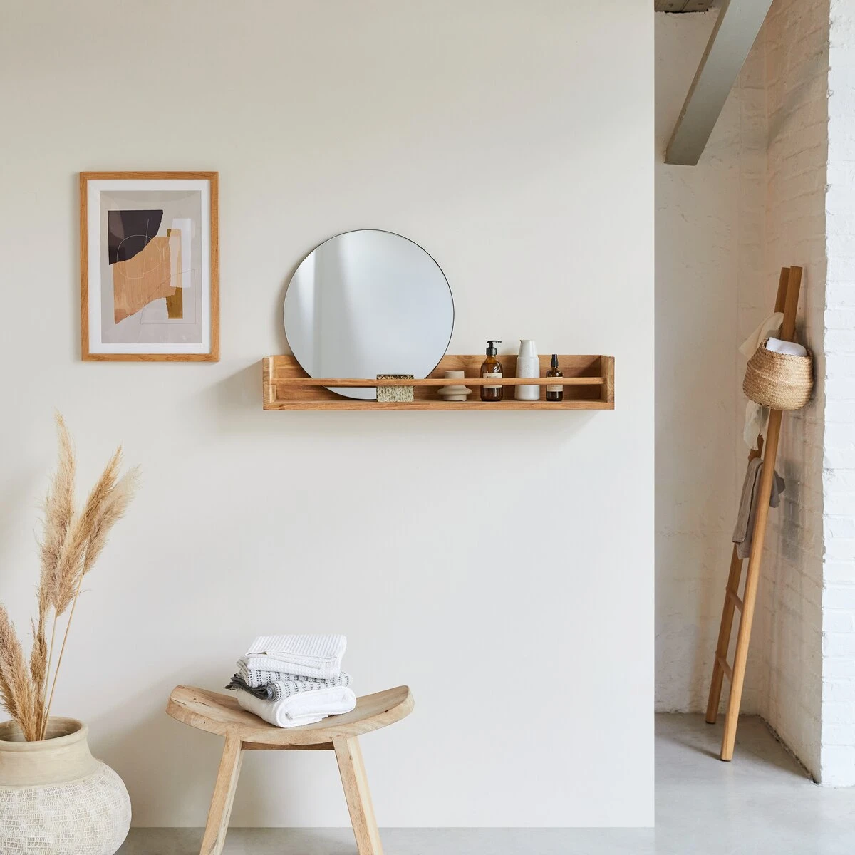 La blondeur de son teck naturel permet de l’intégrer dans de nombreux univers décoratifs : au salon, dans la chambre… et même dans l’entrée pour accueillir bonnets et écharpes.