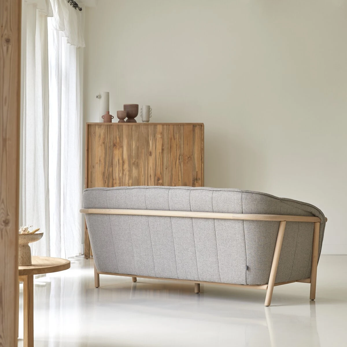 Le canapé Yas en chêne massif et tissu gris peut être complété d’un ou deux fauteuils Yas pour vous concocter un espace à l’atmosphère à la fois contemporaine et… intemporelle : la simplicité de la ligne et l’élégance du coloris lui permettent de traverser avec réussite le temps. Il vous est aussi proposé en 3 places.