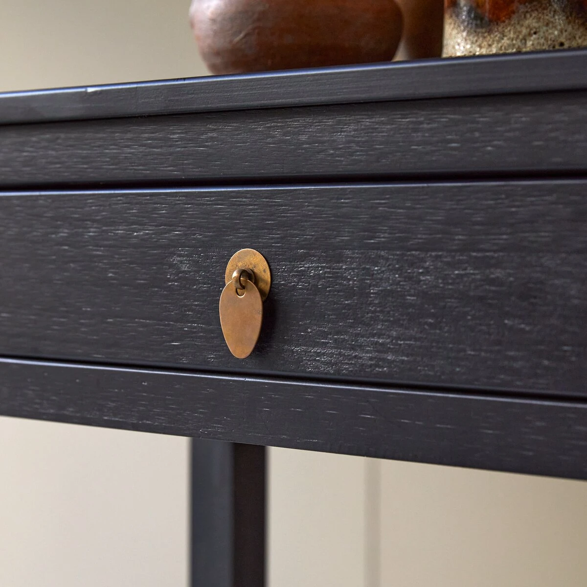 La console en pin massif Zenaka fait partie de ces meubles qui invitent au voyage sans bouger de chez soi⊠et confĂšre Ă votre intĂ©rieur un petit air de cabinet de curiositĂ©s bien agrĂ©able Ă vivre au quotidien ! Son allure contemporaine et son coloris profond rĂ©veillent dâune touche exotique toutes les piĂšces de la maison : du salon au sĂ©jour, en passant par la chambre ou lâentrĂ©e, elle trouve sa place dans tous les espaces. TravaillĂ©e dans un pin massif qui a reçu la certification FSCÂź – ce qui vous garantit quâil provient de forĂȘts durablement gĂ©rĂ©es – elle est idĂ©ale pour exposer vos plus jolis objets, des plantes ou des bouquets de fleurs. Les deux tiroirs permettent de ranger tout ce quâon ne veut pas voir traĂźner dans la maison et le plateau infĂ©rieur reçoit, par exemple, des magazines au salon, des chaussures, des sacs ou des chaussons dans lâentrĂ©e, des piles de linge esthĂ©tiquement pliĂ© dans la chambre ou la salle de bain.